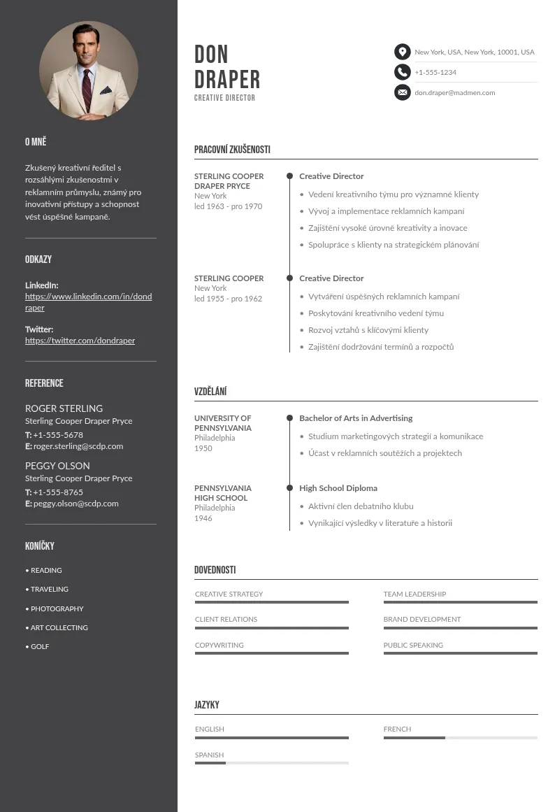 Pojďme se do toho pustit po hlavě! Začněme vzorovým příkladem klasického životopisu, kterým se můžete inspirovat. Další příklady životopisů naleznete zde .