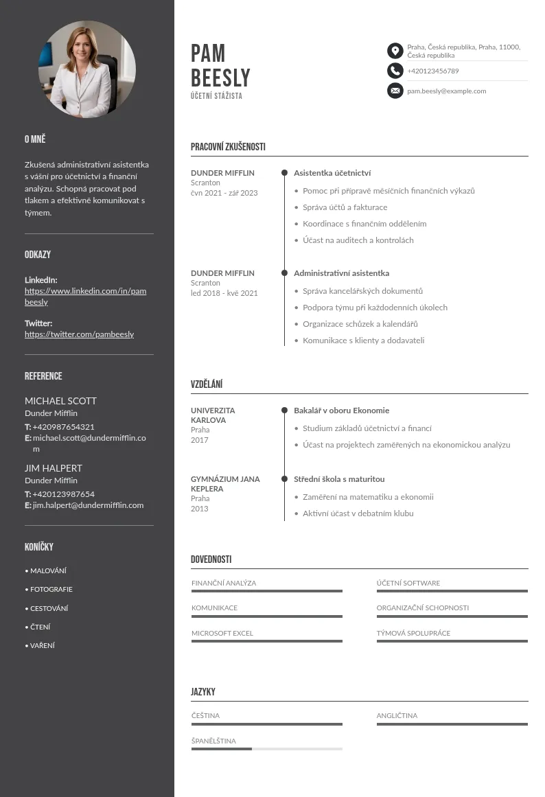 Držte se stručného formátu na jednu stránku. Čistá šablona a jasná struktura vám pomůže působit profesionálně i bez praxe.