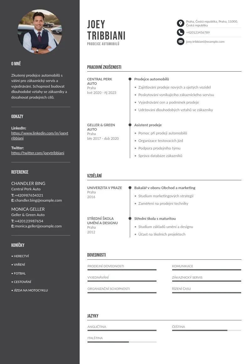 Pomocí svého životopisu prodejce automobilů utváříte první dojem. Pokud chcete, aby si vás při hledání práce někdo všiml, je nezbytné, aby byl váš životopis dobře napsaný a vybroušený do dokonalosti.