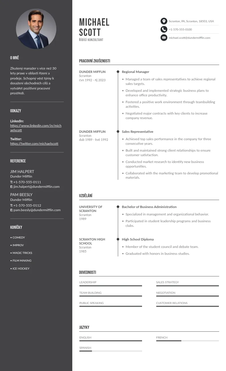 Chcete-li si udělat lepší představu o tom, jak by měl vypadat dokonalý životopis konzultanta v oblasti řízení, podívejte se na níže uvedený vzor životopisu:
