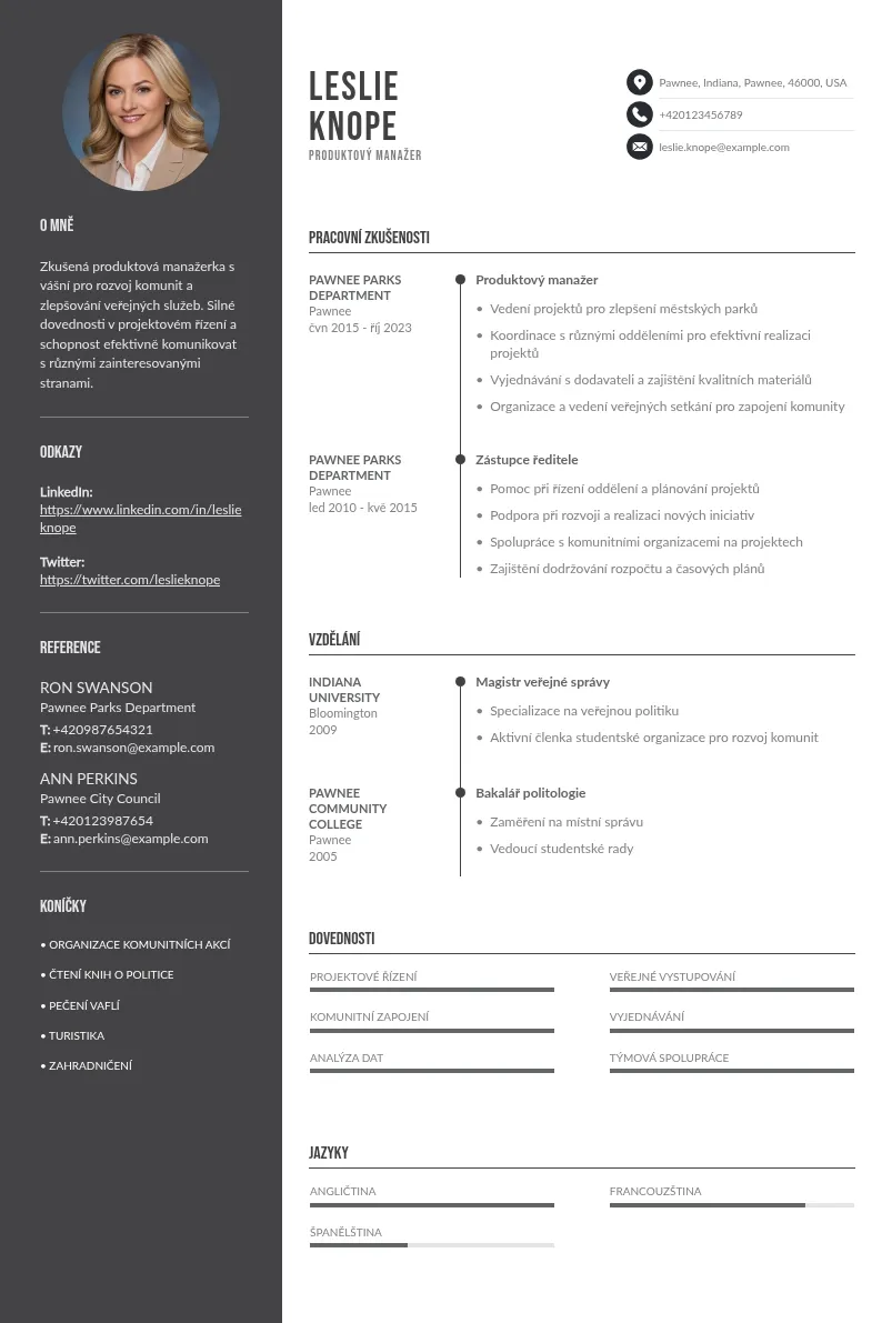 Níže začínáme kompletním příkladem CV produktového manažera, kterým se můžete inspirovat při tvorbě vlastního CV. Inspiraci také můžete najít v tomto obecném průvodci psaním životopisu manažera . Další příklady životopisů podle oboru naleznete na našich webových stránkách.
