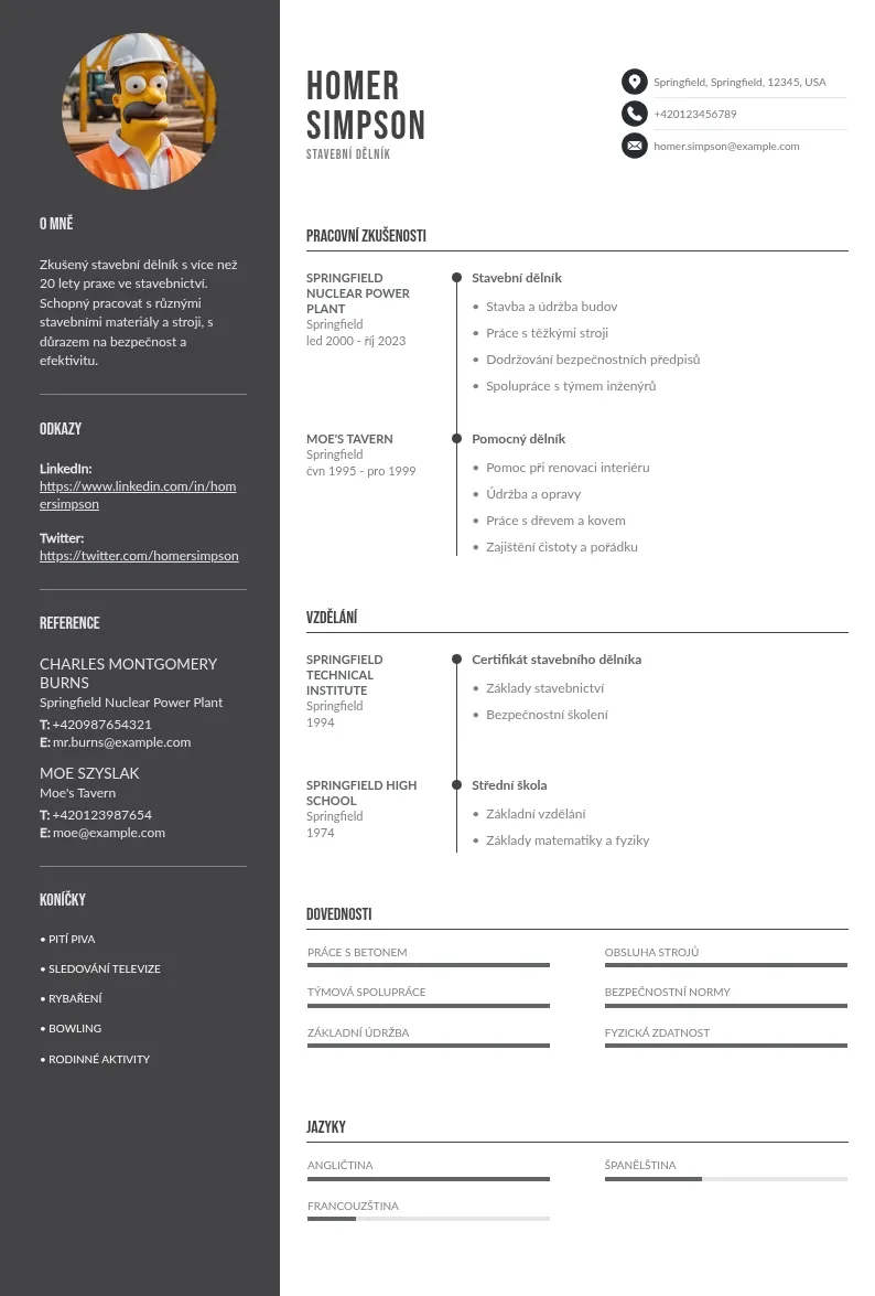 Hledáte zaměstnání ve stavebnictví? Abyste si usnadnili hledání práce, musíte mít pevný základ, a to dobře sestavený životopis stavebního dělníka.Jako stavební dělník budete mít na starost celou řadu povinností, které zahrnují fyzickou práci na stavbách. Může se jednat o přípravu staveniště, přesun materiálů, dodržování stavebních plánů, obsluhu stavebního zařízení a mnoho dalšího.