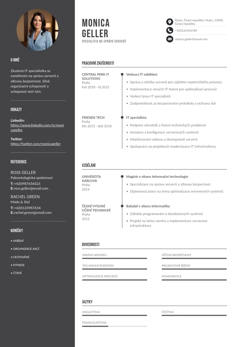 Instalace a údržba serverů nebo jiné pracovní zkušenosti do životopisu